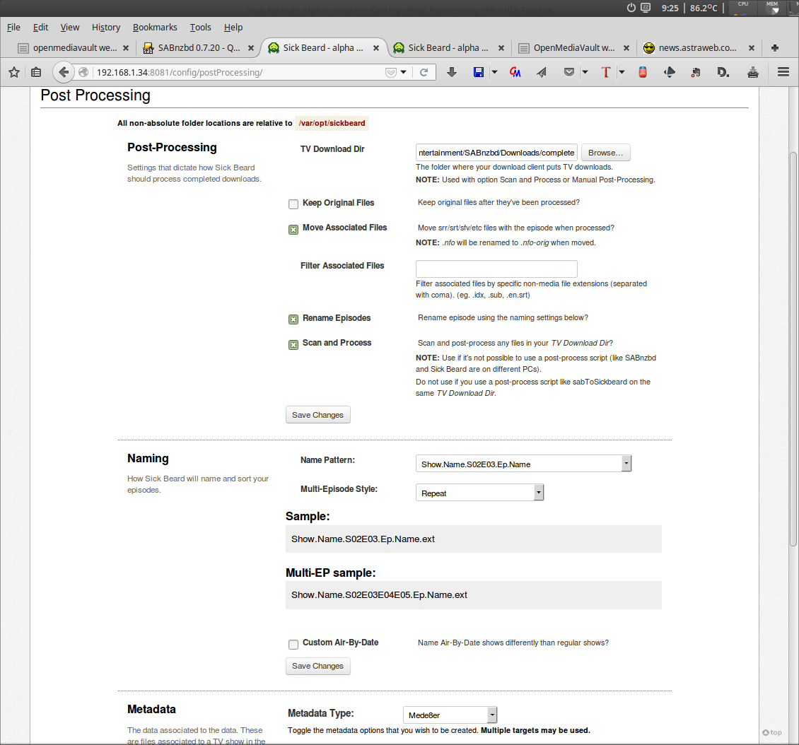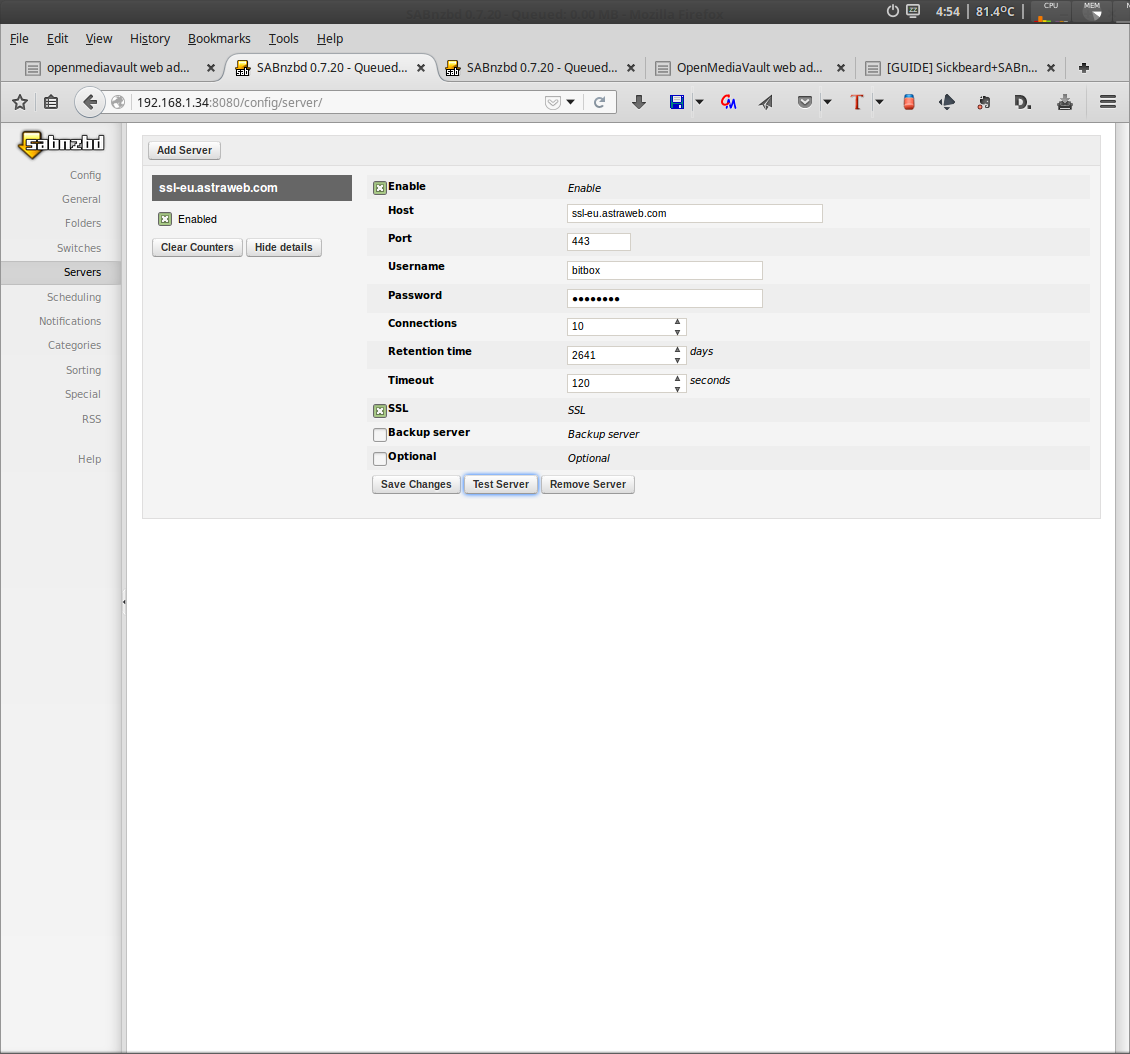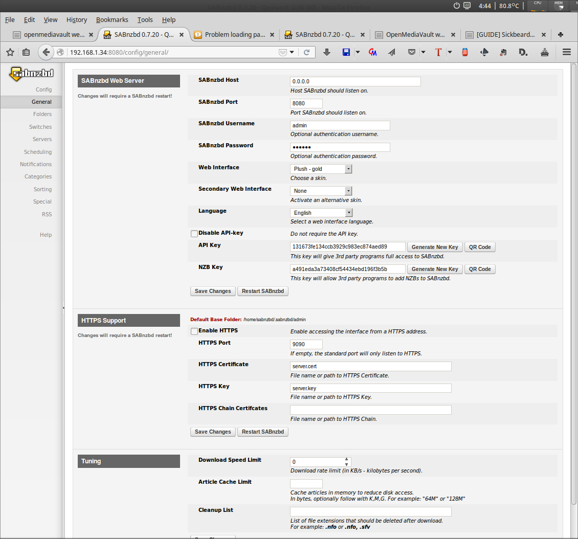 Services > SABnzb: