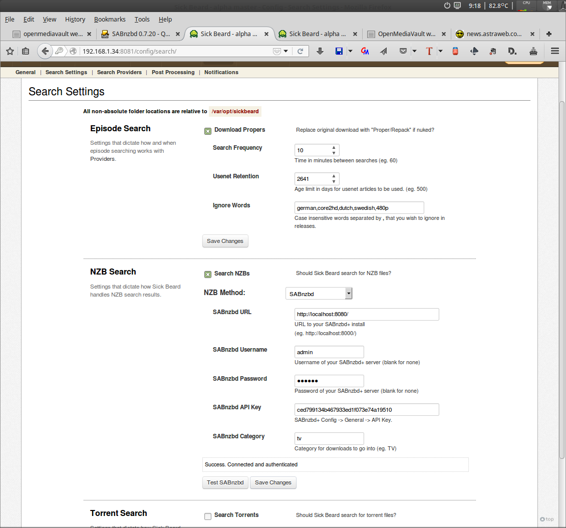 > mkdir -p /Storage/Entertainment/SABnzbd/Downloads > chmod -r go+rw /Storage/Entertainment/SABnzbd/