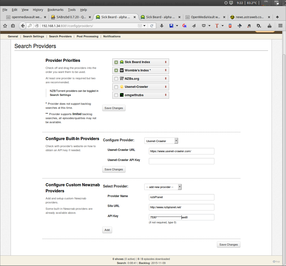 System > Plugins > Section Downloaders > openmediavault-sabnzbd 1.0.5 > Install